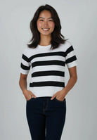A modern take on the timeless stripe. The Illaine Top brings effortless sophistication with its bold black-and-white pattern and soft French terry texture. Designed to strike the perfect balance between comfort and structure, it feels cozy yet refined—ideal for days when you want to look polished without trying too hard.