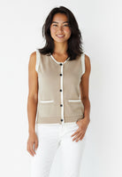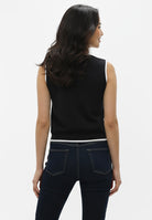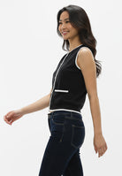 The Mheshika Top brings a modern touch to timeless styling. Designed with a sleeveless silhouette and sharp contrast trims, it balances classic detailing with a clean, versatile appeal. The front button-down and twin pocket accents lend polish, while the premium cotton blend ensures comfort that lasts throughout the day. Perfect on its own or as a layering piece, it’s an easy staple that elevates both casual and refined looks.