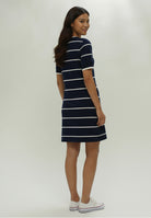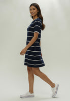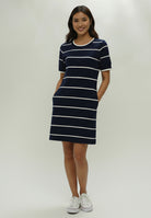 The Mizra Dress brings fresh energy to everyday style with its bold stripes and subtle popcorn-textured fabric. Made from a premium cotton blend, the popcorn detail gives the surface a lightly raised feel, adding depth and character to the classic stripe pattern. Designed with short sleeves, a straight silhouette, and an easy slip-on fit, it’s a piece that feels casual yet thoughtfully refined. Select colorways include side pockets for extra functionality.