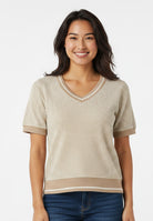 The Nizra Top is a versatile knit with a textured popcorn finish that adds depth and character to its clean silhouette. Featuring a flattering V-neckline and short sleeves, it’s a polished essential that transitions easily from workdays to casual weekends.