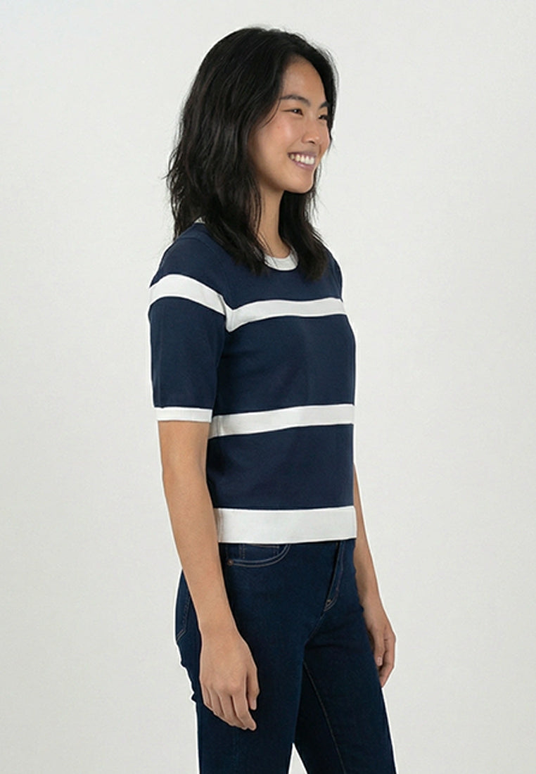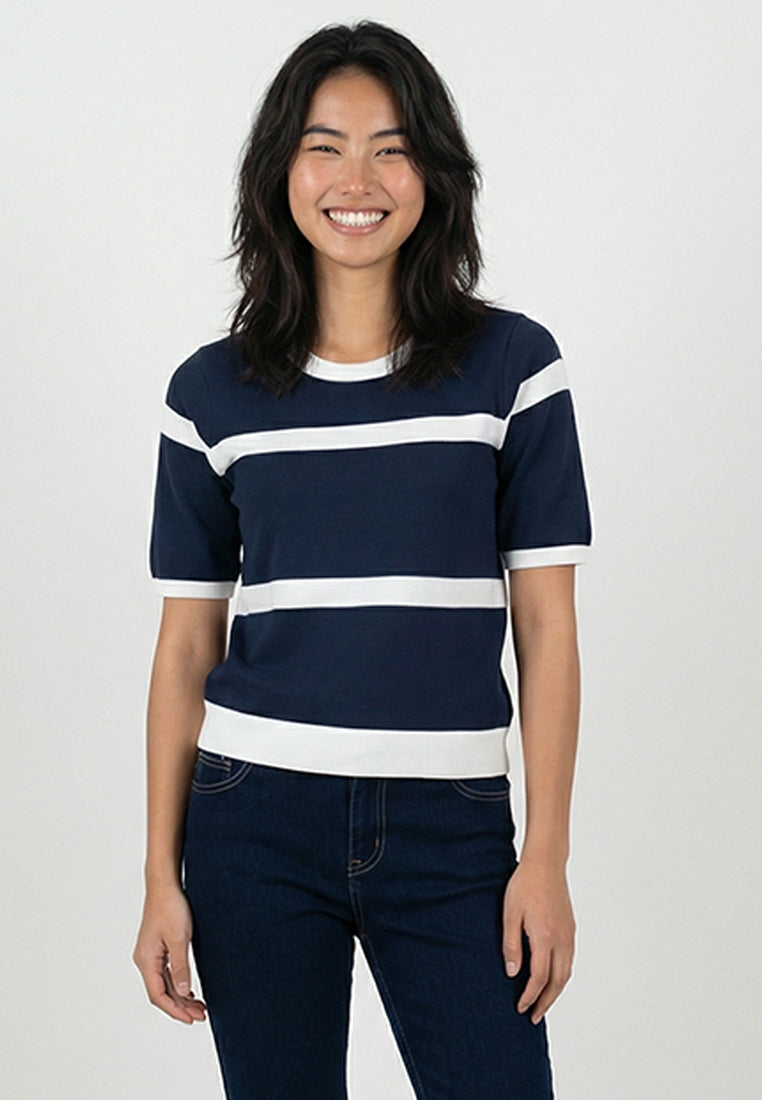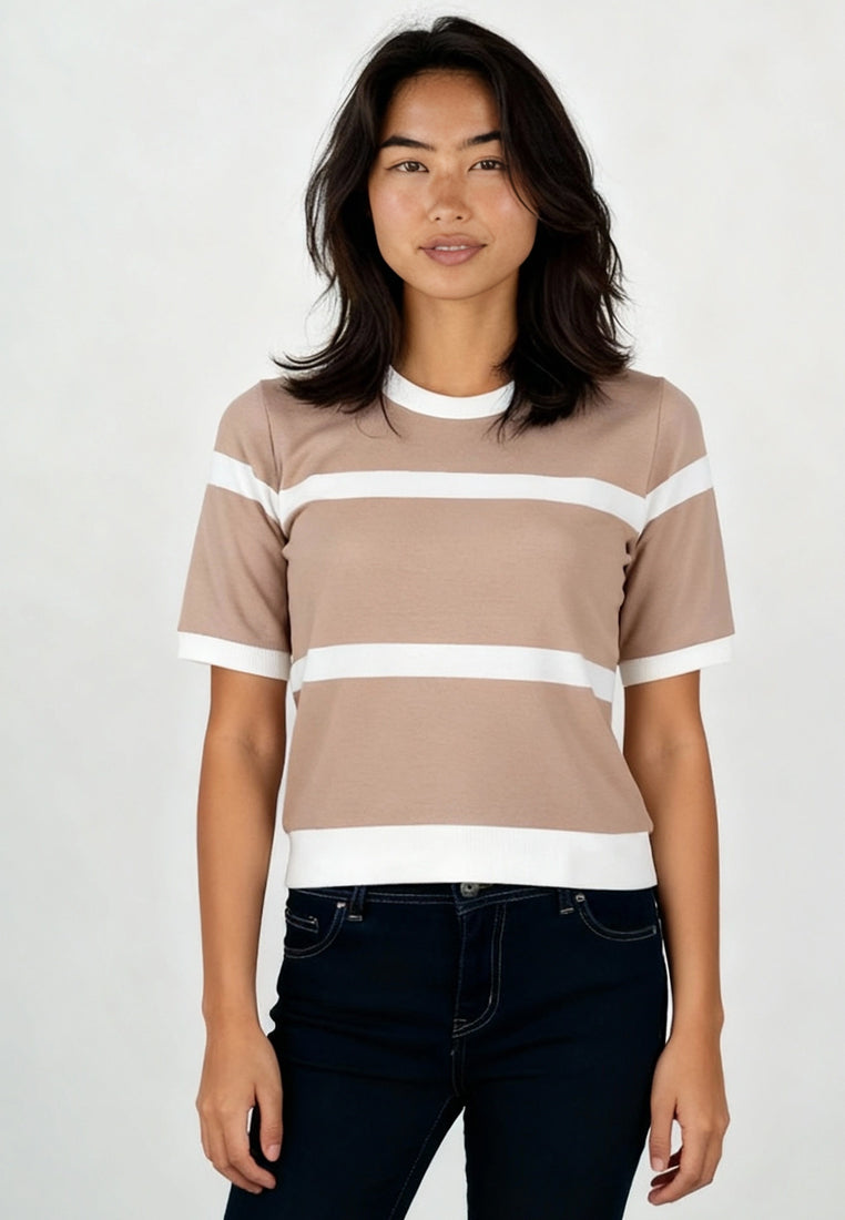 The Nazel Top brings a clean, contemporary feel to your everyday wardrobe with its bold stripe layout and smooth premium French terry fabric. Soft, structured, and easy to wear, it offers a refined take on casual dressing—perfect for days when you want comfort without compromising style.